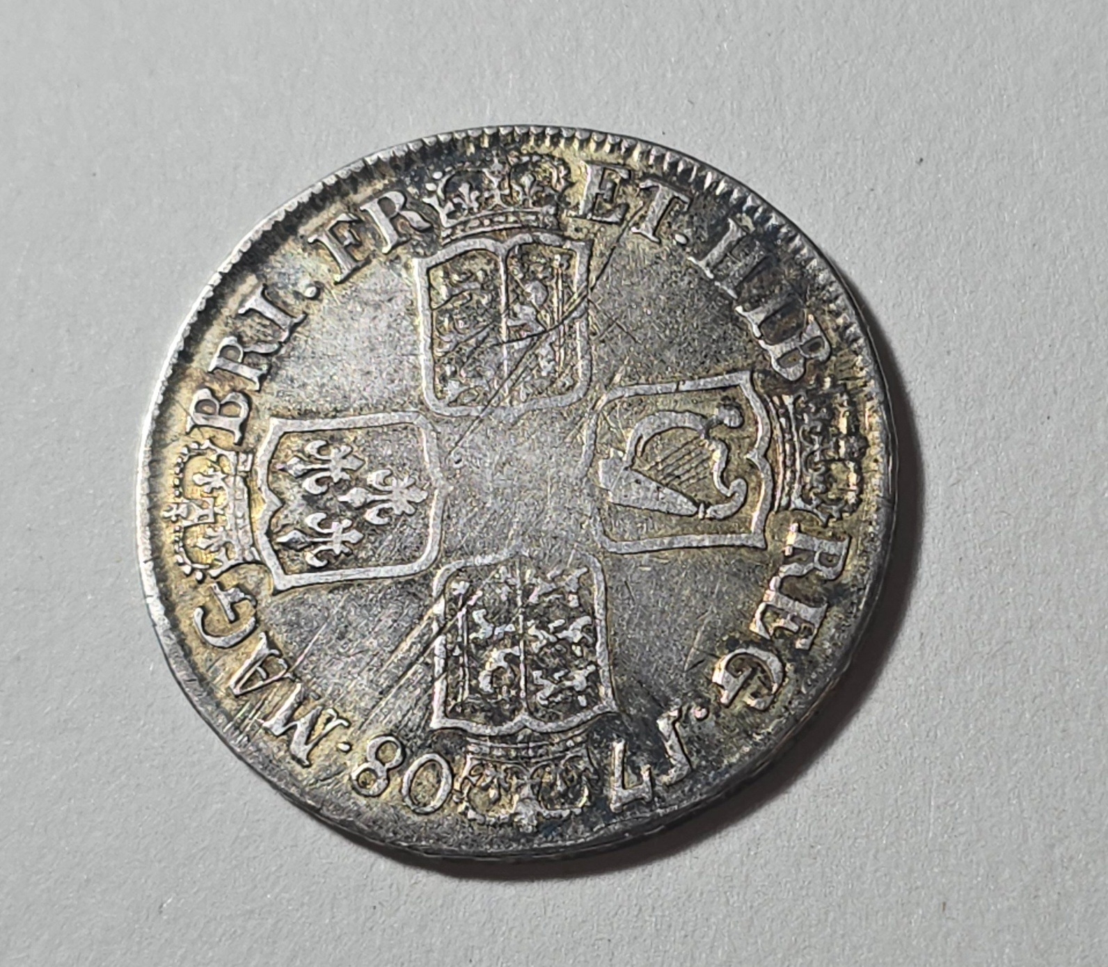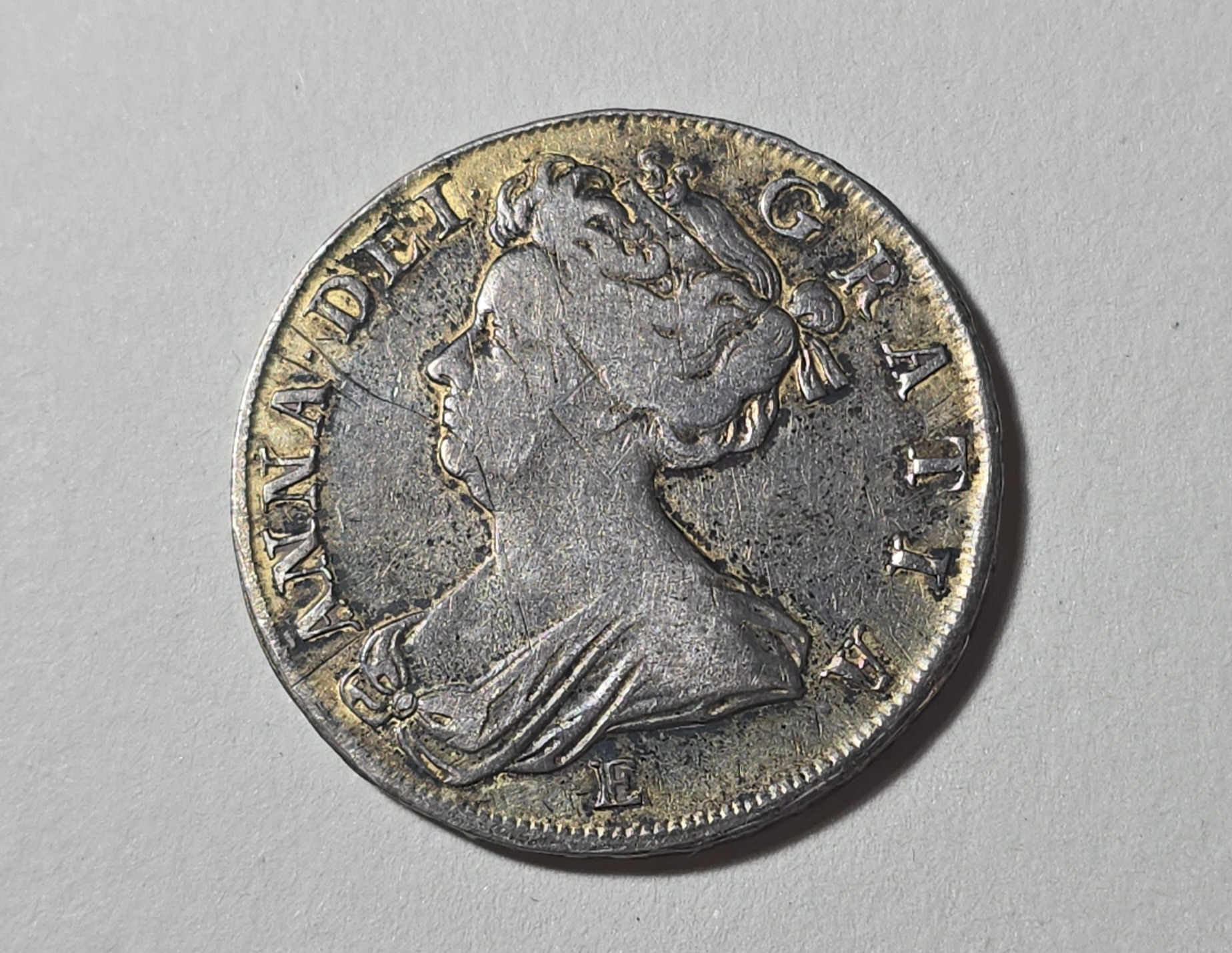 Queen Anne, AR Halfcrown , Edinburgh Mint, 1708, septimo, NF (traces of gilding, reverse some scratches).