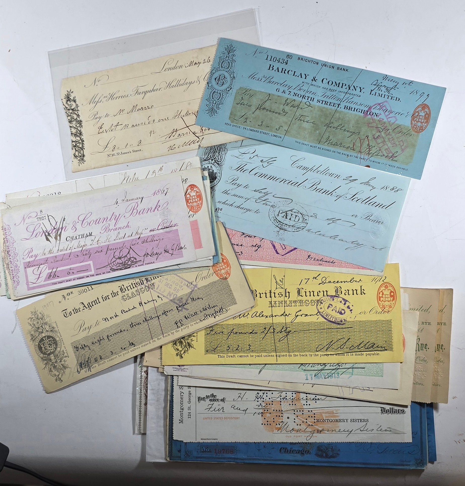 A collection of various cheques circa 1817-1910, all in good condition.