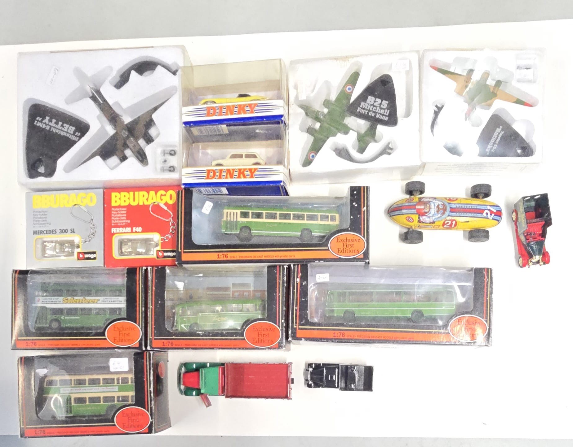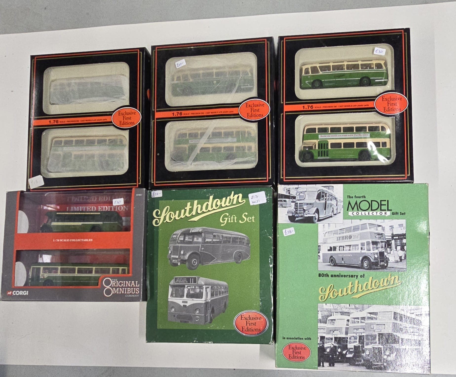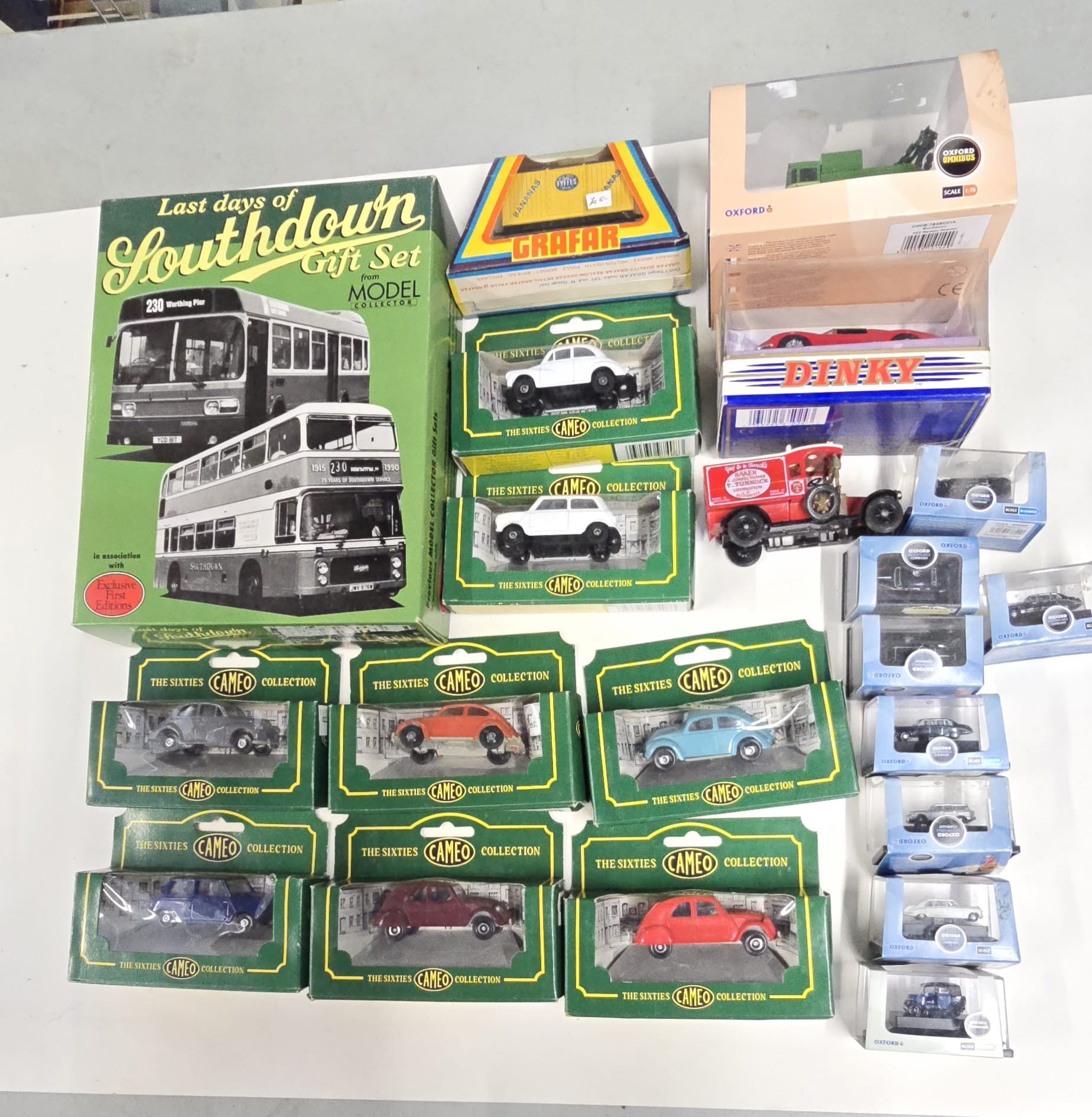 A quantity of EFE Southdown Buses and Coaches. 2 x 2 vehicle Gift Sets - Bristol VR Series III and a Leyland National. The other is a Leyland PD2 High Bridge Bus and a Bedford OB Coach. Plus 4x 2 vehicle packs. Also 5 individual vehicles. Also a Corgi OOC 2 vehicle set - Leyland PS1 and a Leyland Leopard. Also in Lot 3x Matchbox Dinky Toys- Mini Cooper 'S', Ferrari Dino 246 GTS and an E Type Jaguar. 9 x Corgi Cameo series vehicles. Oxford AEC Matador Wrecker, Southdown. 8 N Gauge Oxford cars. 2x Bburago Key-Holders and a few other items including 3 aircraft. Mostly boxed. Some light wear. Contents GC-VGC