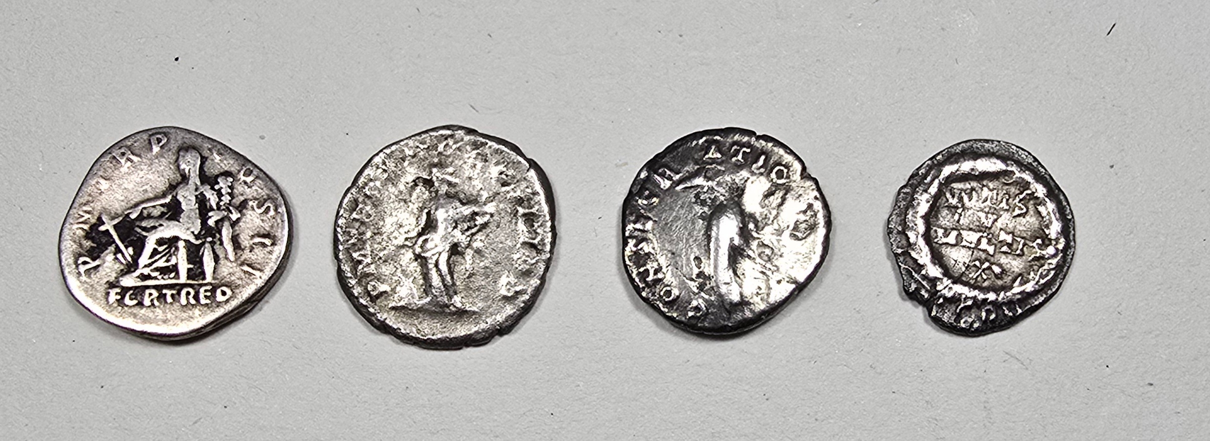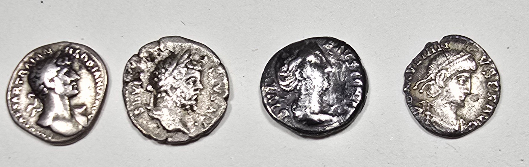 4 Roman coins inc; Hadrian,Faustina,Constantine etc. Fine