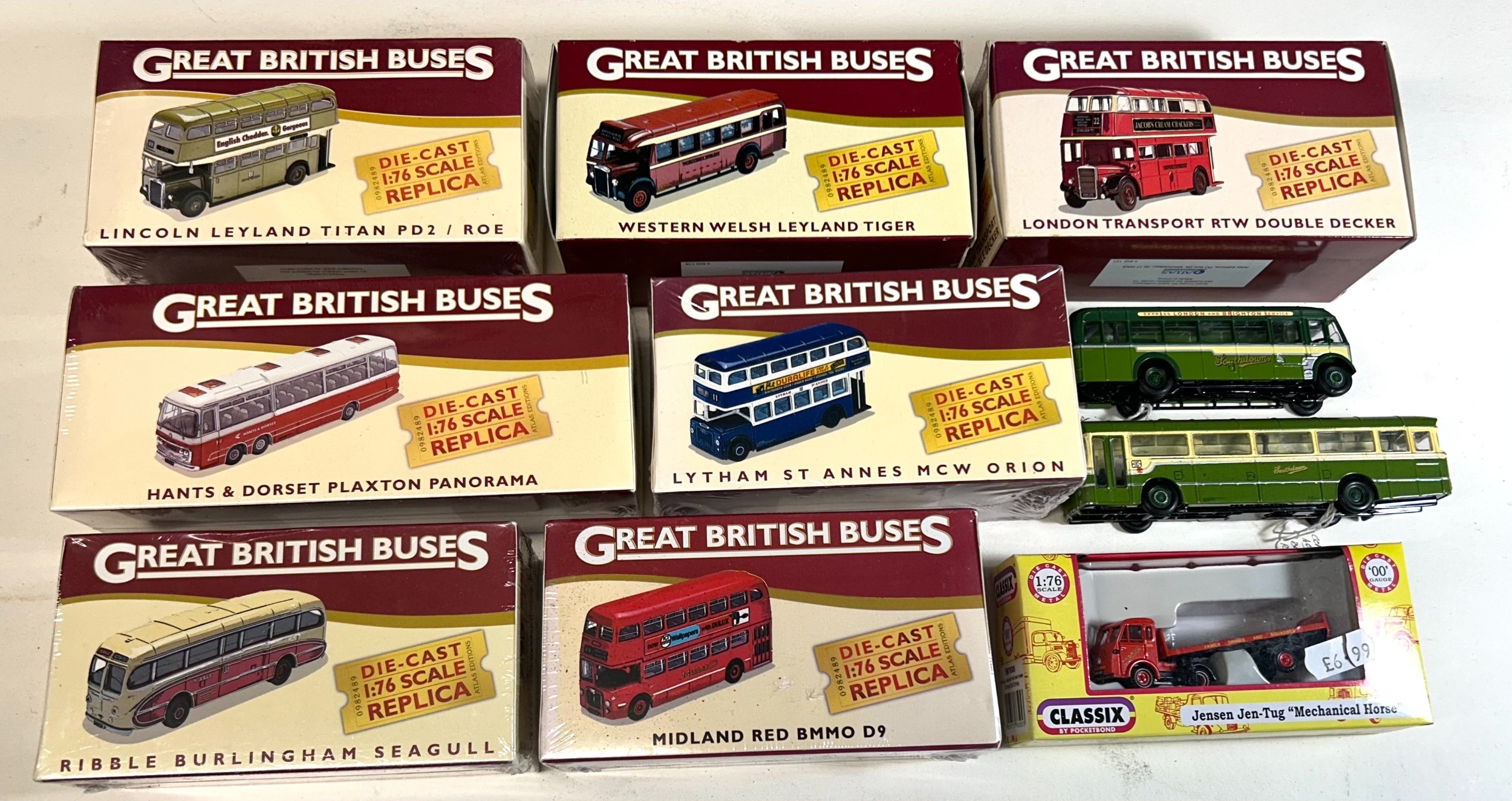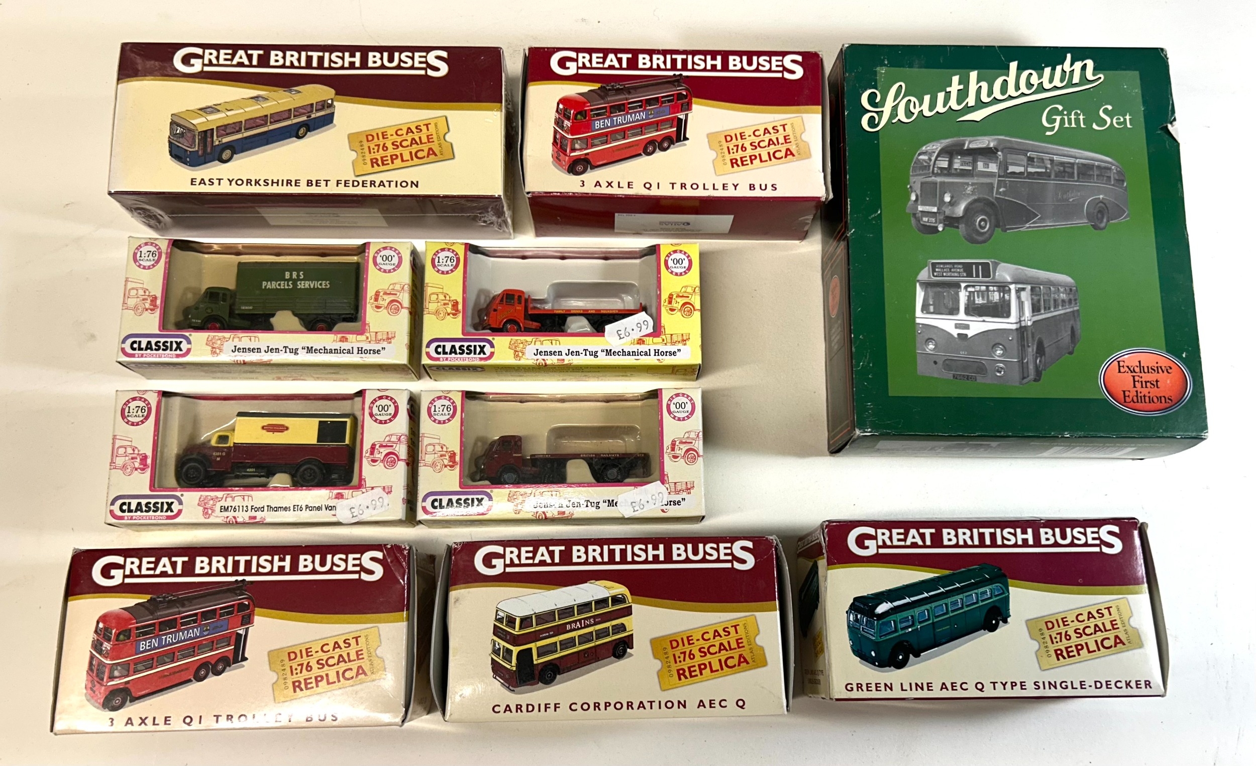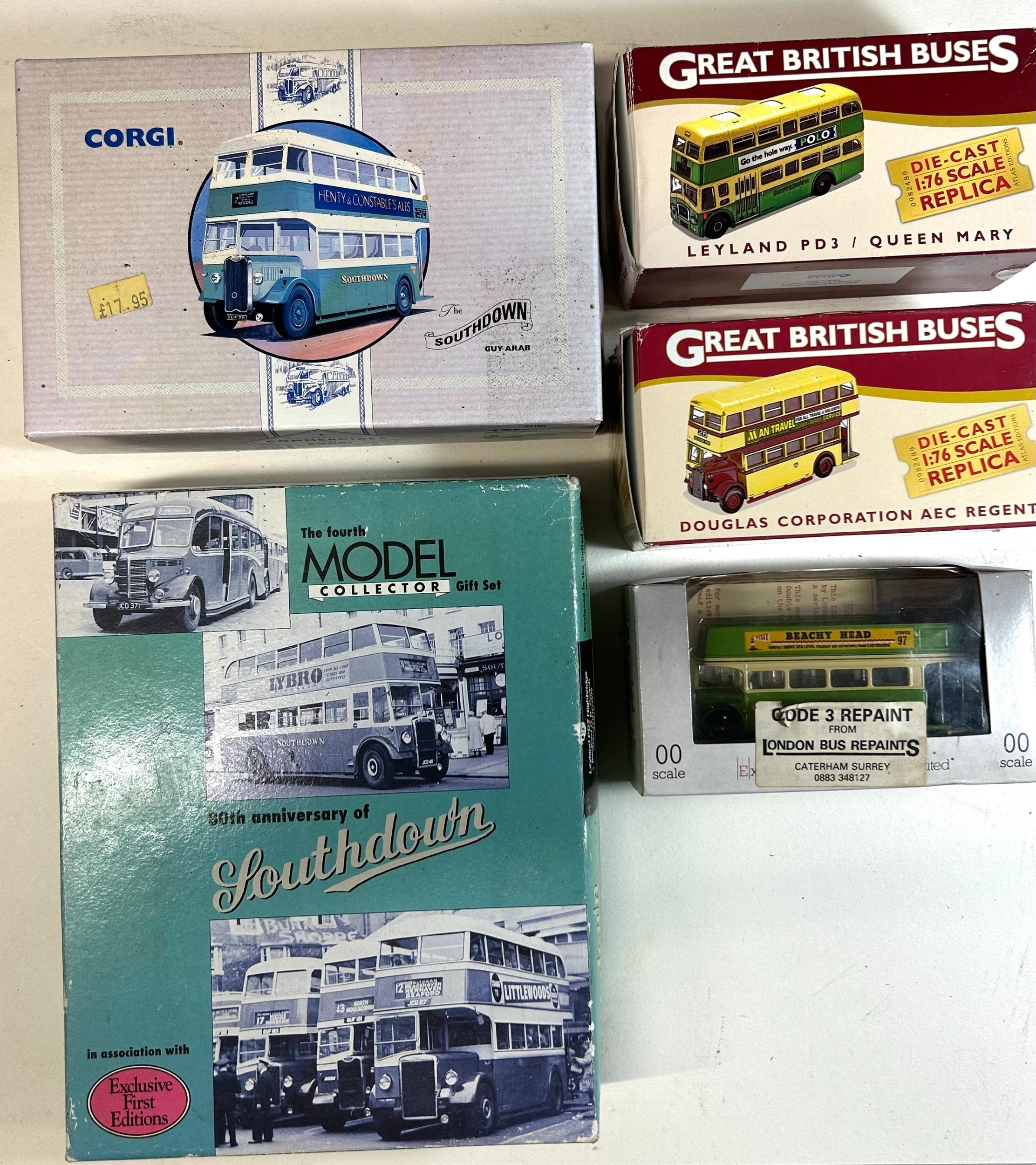 15 GREAT BRITISH BUSES, 5 CLASSIX 1:76 scale models, 2 EFE Southdown double bus pack, CORGI Classics Guy Arab SOUTHDOWN, and others. All boxed with some wear and fading, Some GBB are sealed, also 2 loose EFE. Condition. GC-MINT £60-80
