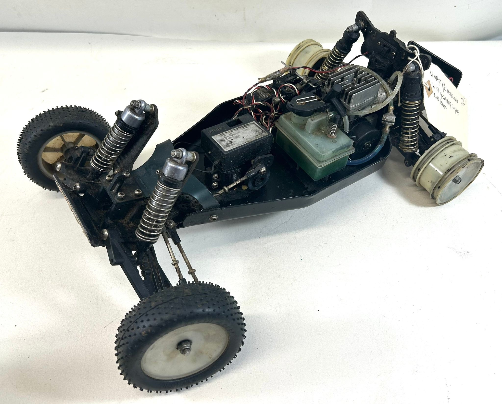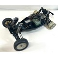 A radio controlledI 1/10 Scale Traxxas Nitro Buggy chassis fitted with a glow plug engine. Also fitted with servos. Requires cleaning and servicing before use. Basically QGC-GC well used. Some parts may require replacing.