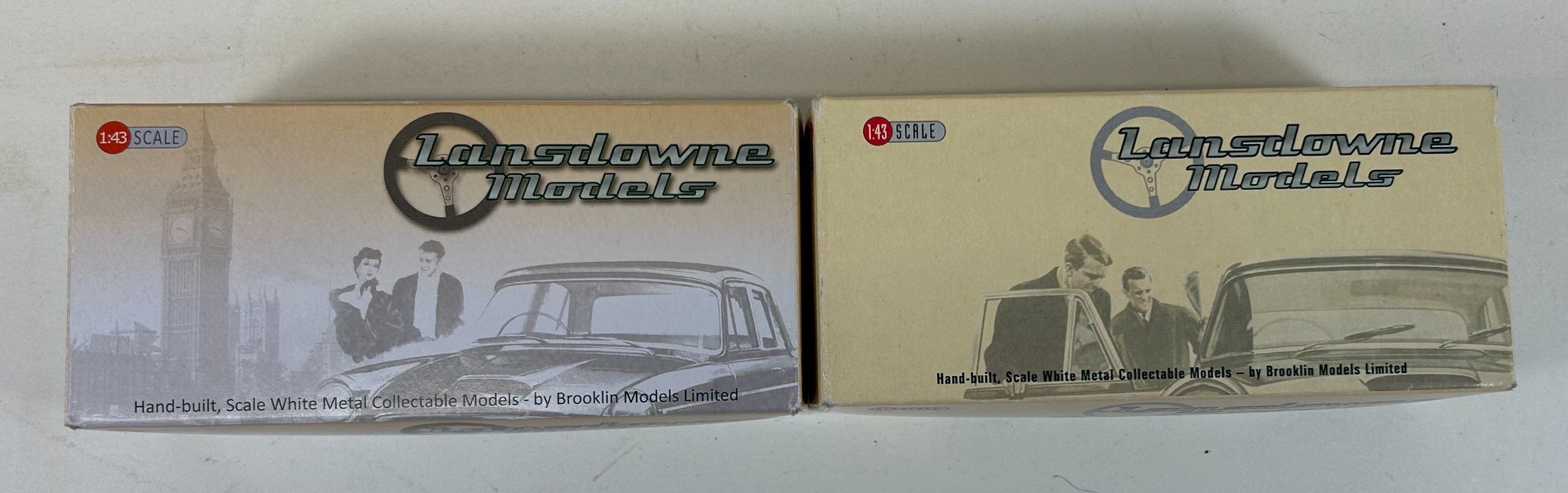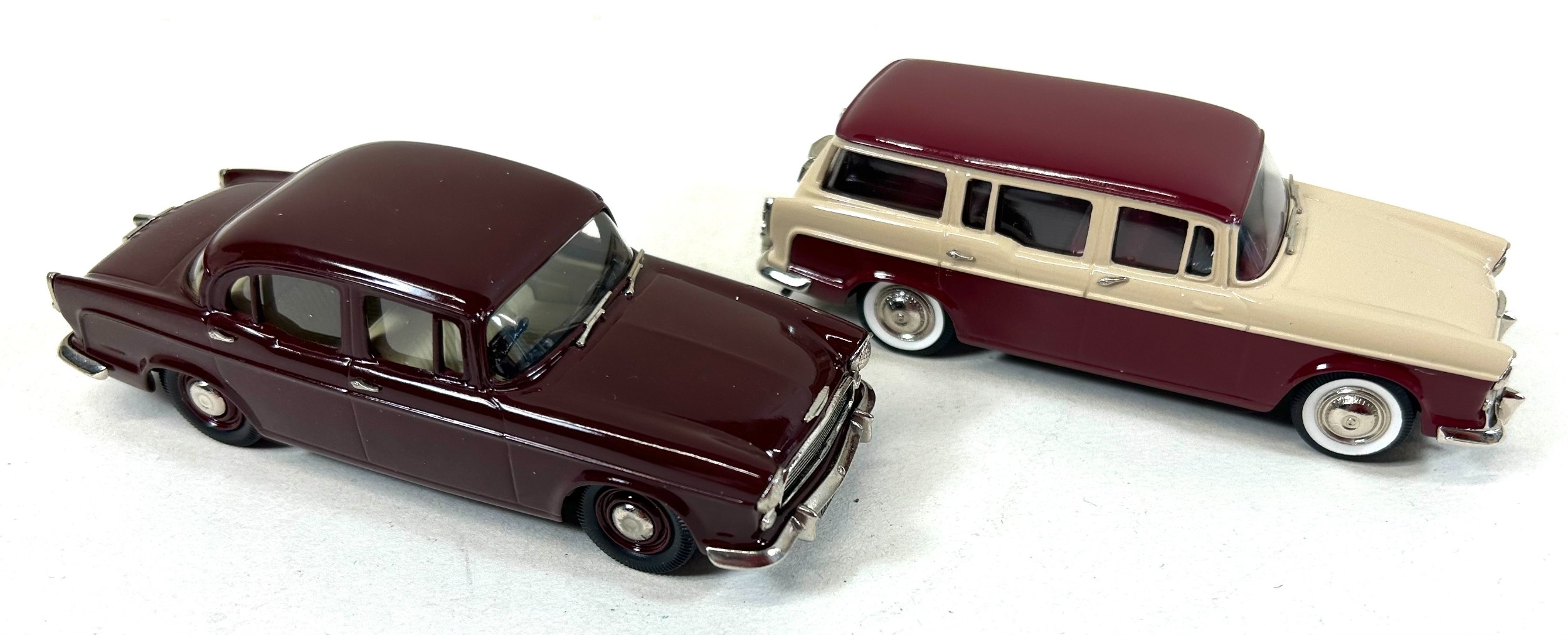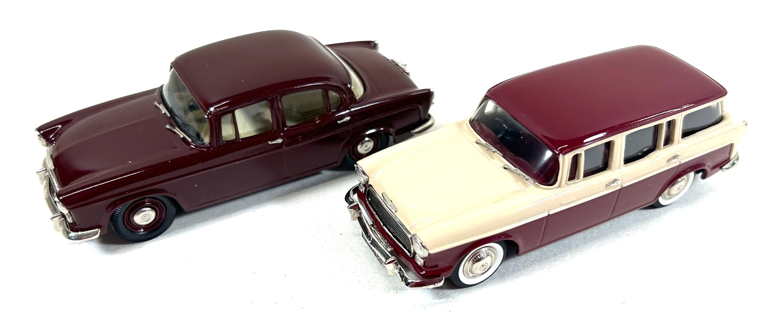2 Lansdowne Models white metal models. LDM.50X 1957 Humber Hawk Estate (Cavalry Beige/Burgundy). Plus a LDM.113 1957 Humber Hawk Saloon MKI (Burgundy). Both boxed, with packing. Contents Mint, as new.