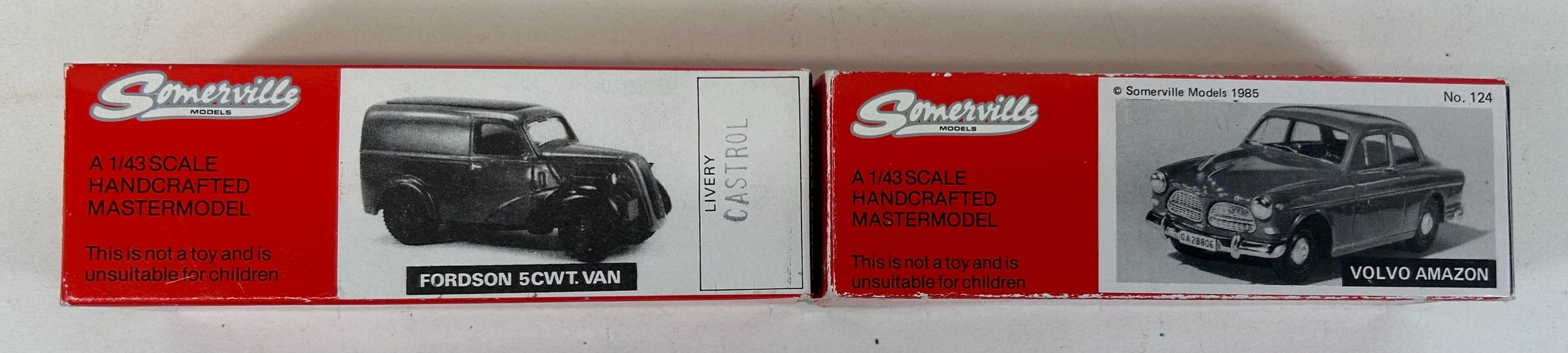 2 Somerville Models. 124. 1962 Volvo Amazon in red. Together with a Fordson 5CWT Van, 'Castrol'. Both boxed, minor wear to one. Contents Mint.