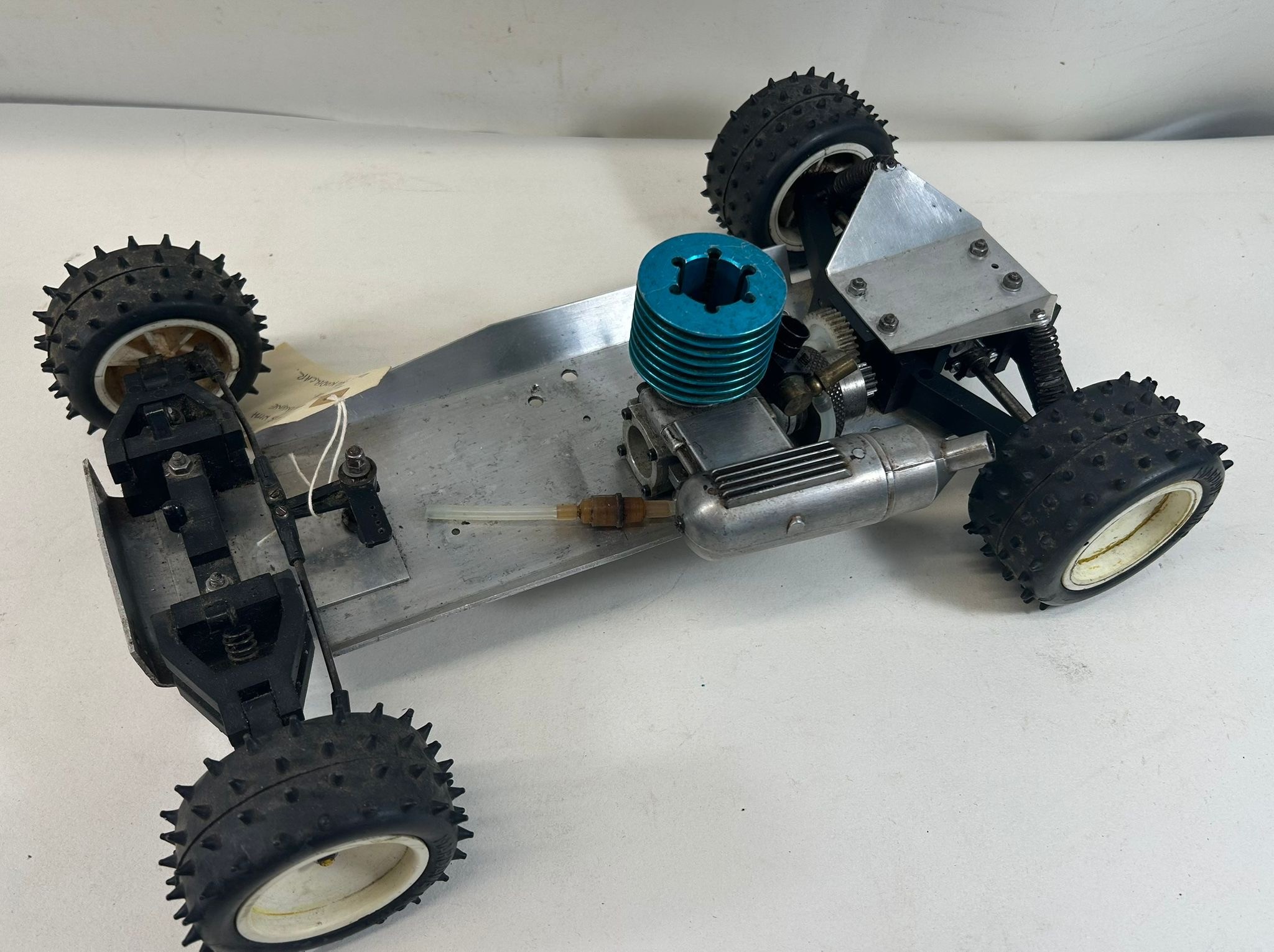 A custom made Mardave Marauder aluminium rolling chassis fitted with an Irvine glow engine and clutch. No servos or body. Requires cleaning and parts to complete. Basically GC.