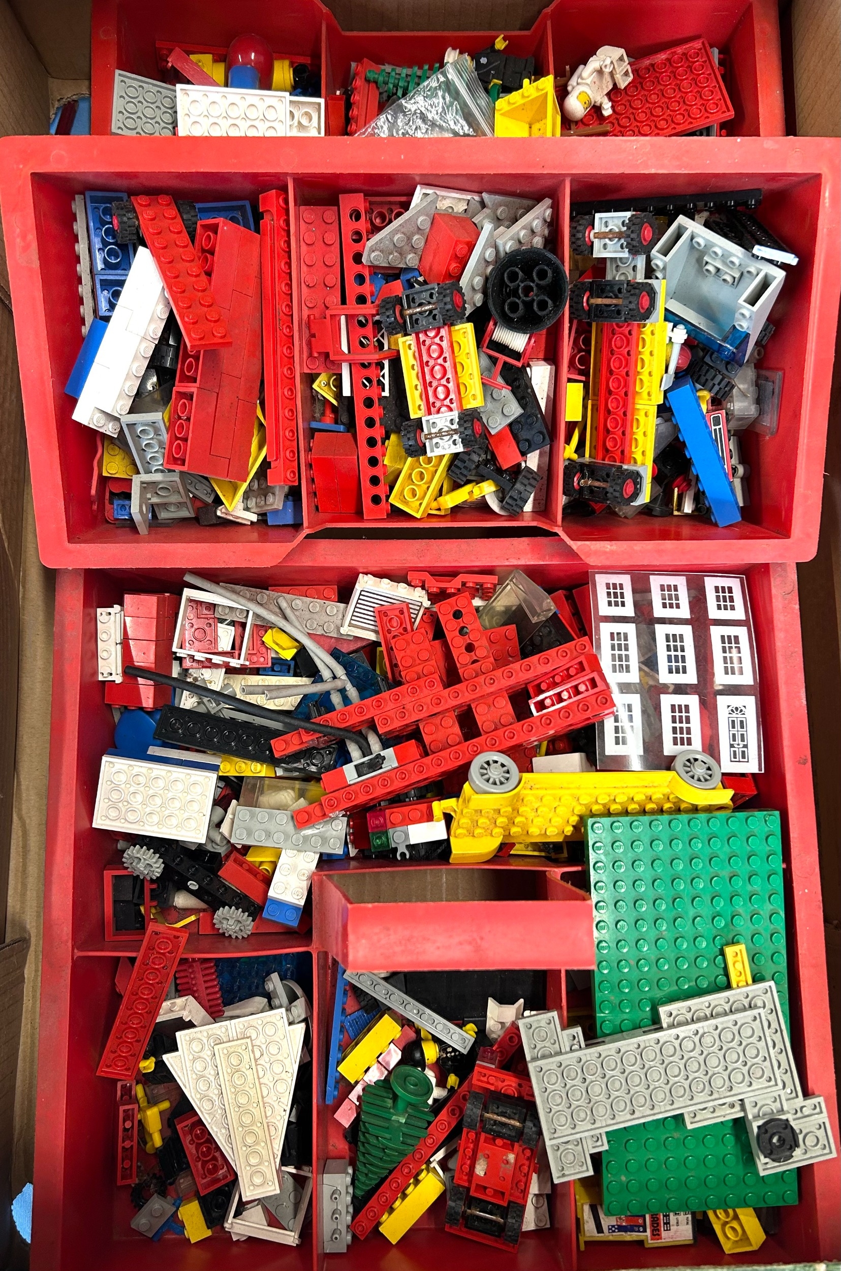 A quantity of VINTAGE Lego, includes, figures, vehicle parts, trees, building parts etc. Sold as loose parts only. Some cleaning required. GC. £30-50