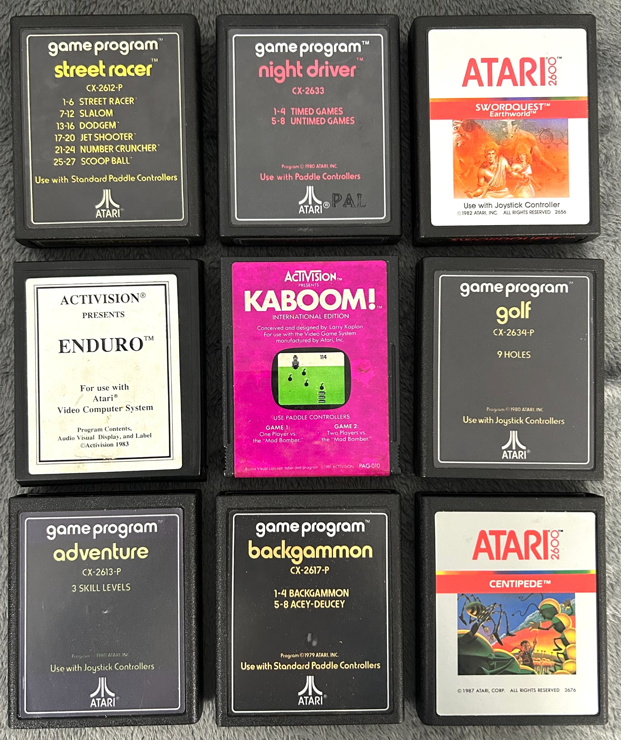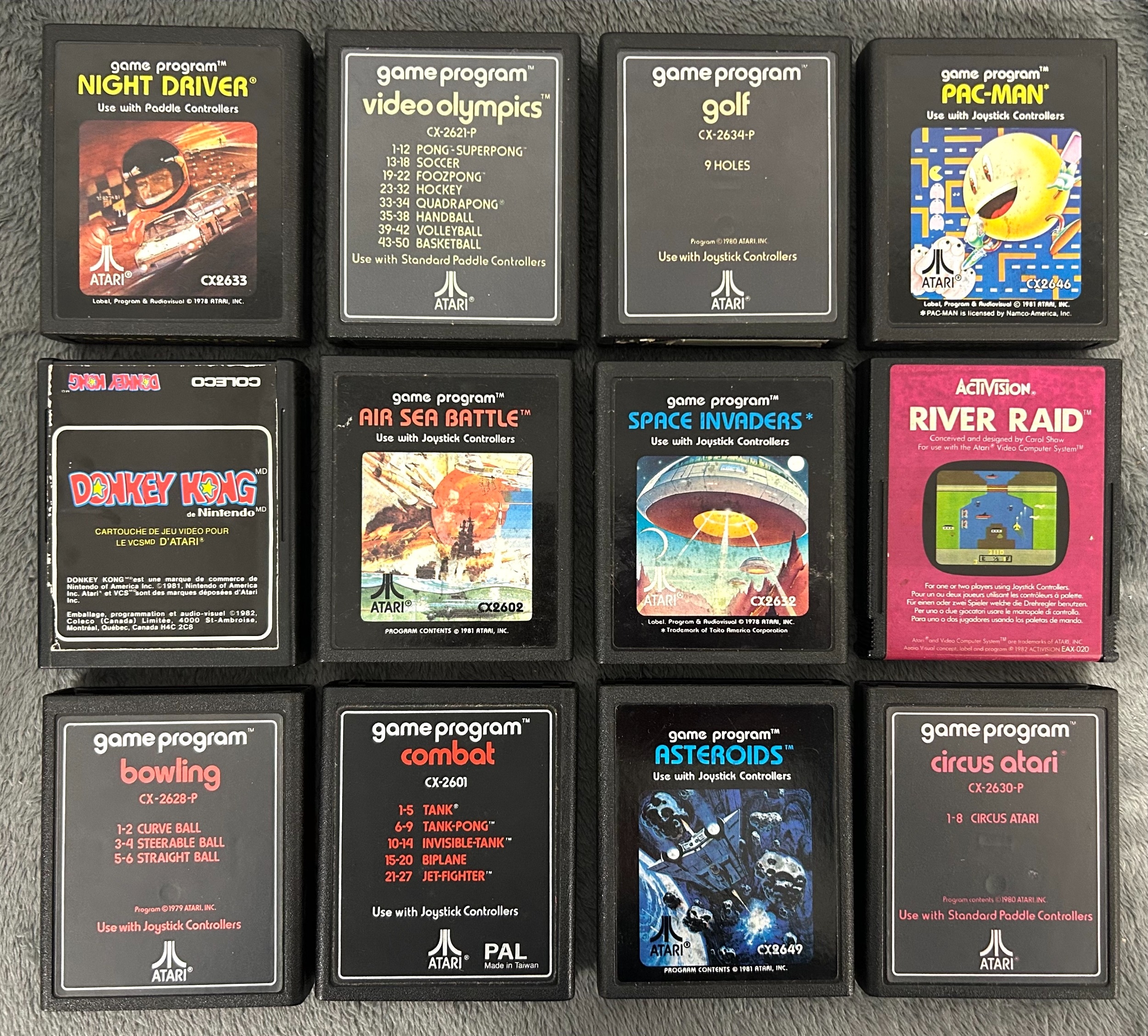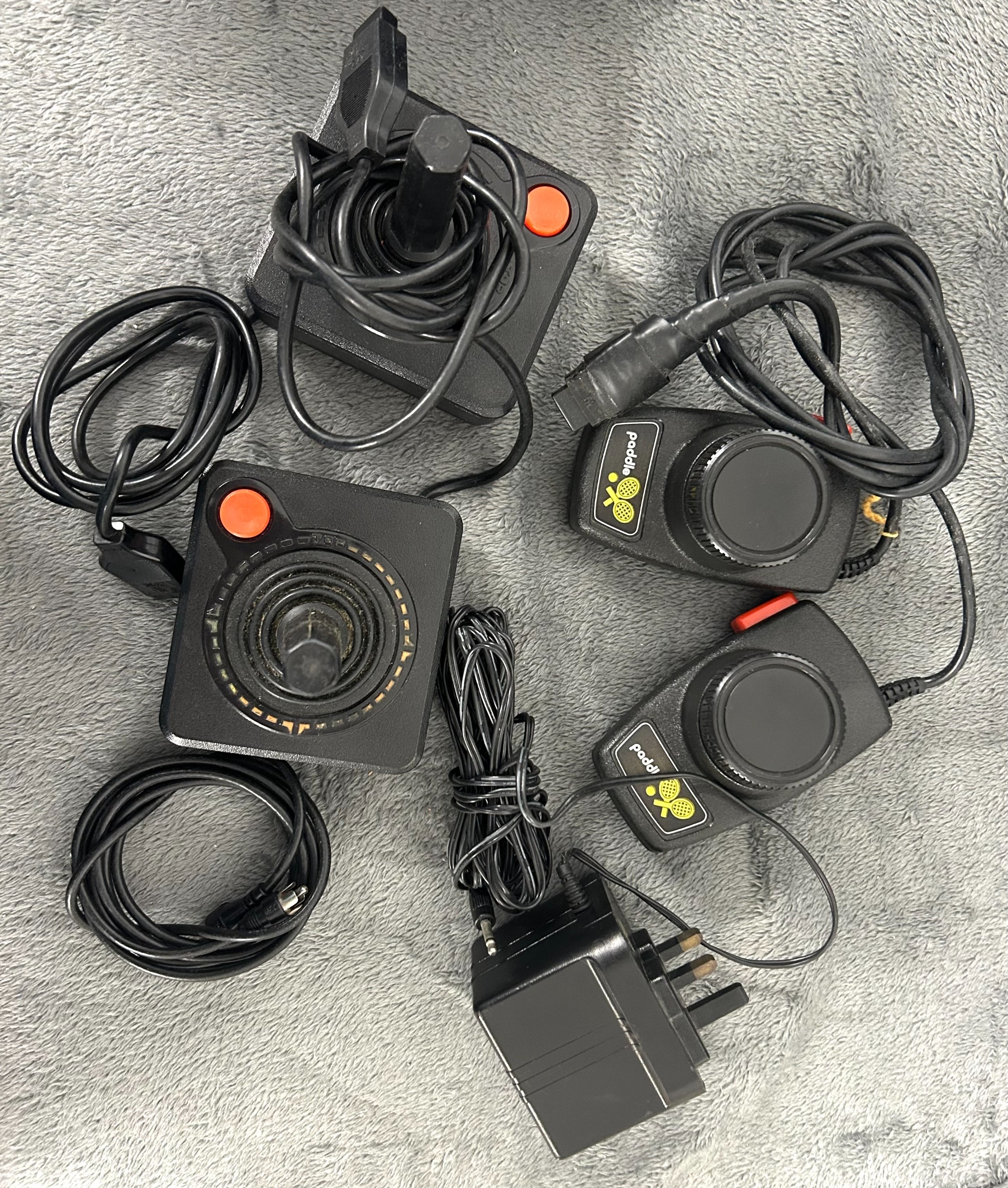 21x ATARI cartridges for the 2600 system, includes COLECO Donkey Kong, Space Invaders, Circus Atari, Asteroids, Activision ENDURO, Swordcrest, River raid, PAC MAN and others, also includes 2 joy stick and 2 paddle controll unuts. and an original ATARI power unit. (ALL UNTETSTED). All games are unboxed. GC £80-120